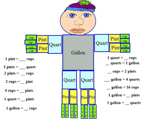 Marilyn Hlass - Students use the clever image to identify equivalent units of liquid measurement. [download the file] |