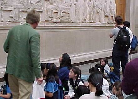 A quick tour of the British Museum. We're seated under the Elgin Marbles. |